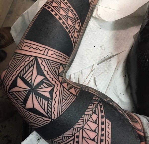 强大的波利尼西亚元素纹身袖子几何纹身图案