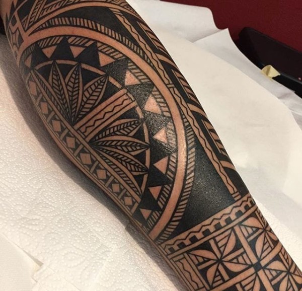 强大的波利尼西亚元素纹身袖子几何纹身图案