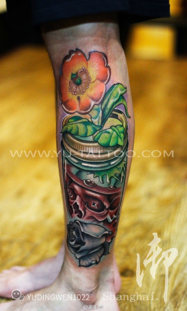 花腿纹身--一组大黑腿纹身图案作品欣赏
