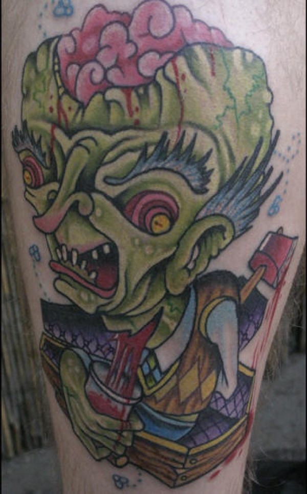 腿部彩色僵尸纹身图案