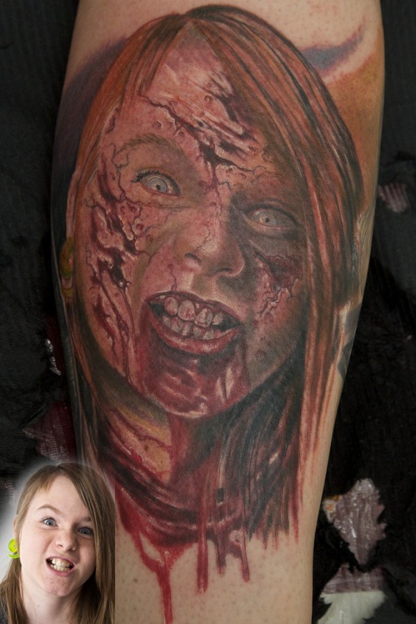手臂血腥僵尸女郎纹身图片