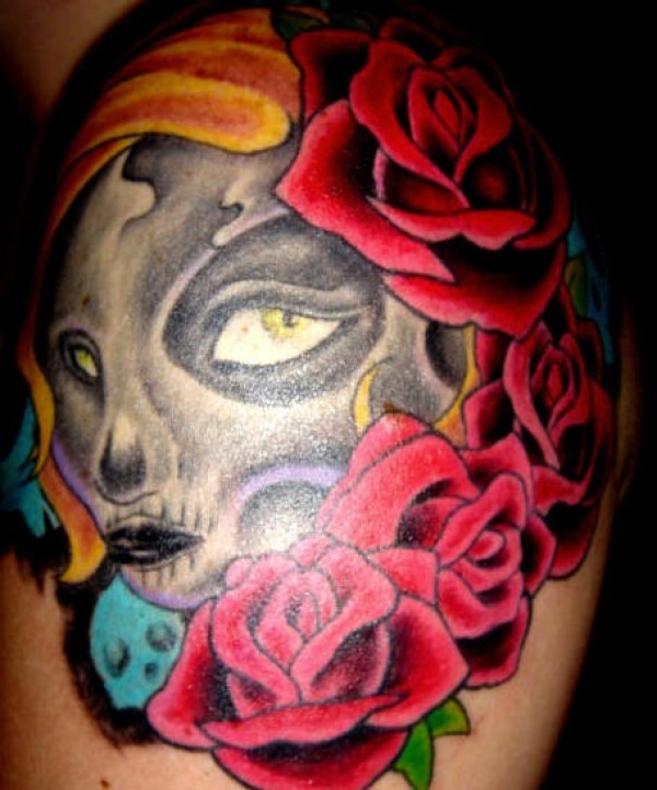 彩色玫瑰僵尸纹身