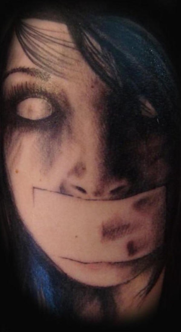 嘴巴被缝起来的绝望女孩肖像