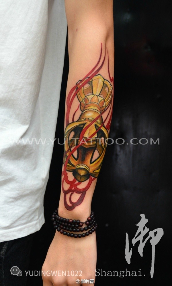 手臂黑灰象神_一组12张手臂上的黑灰象神纹身图案作品欣赏