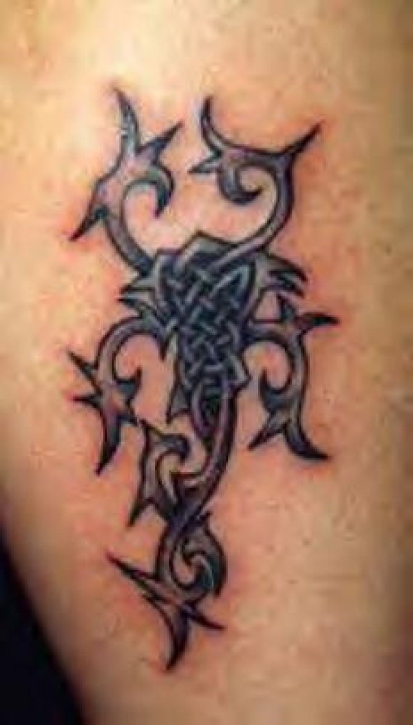 与玫瑰交织的部落纹身图案