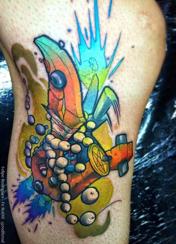 帅气的彩色花腿纹身水墨画纹身图案