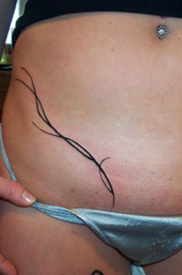 女生后腰纹身黑白灰风格抽象线条纹身图案