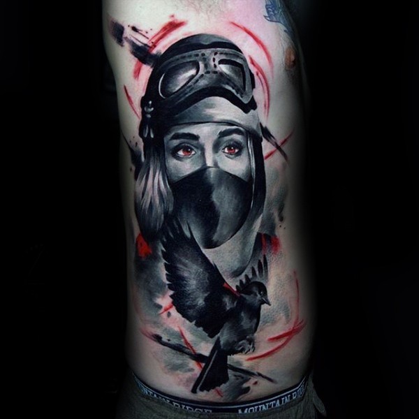 新传统风格的色彩神秘的女人纹身图案