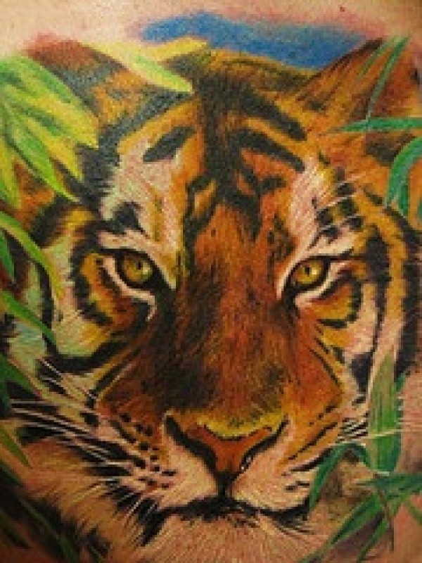 彩色老虎写实纹身图案