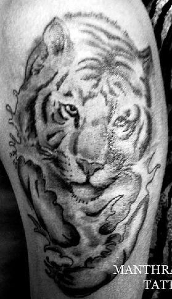 手臂黑白老虎纹身图片