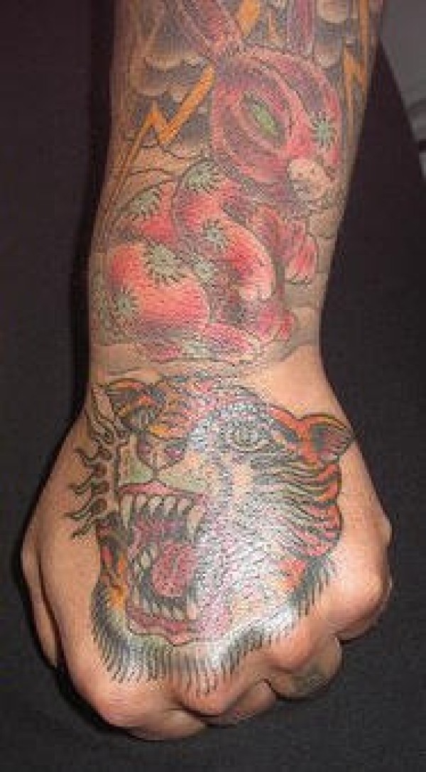手部老虎和兔子的纹身图案