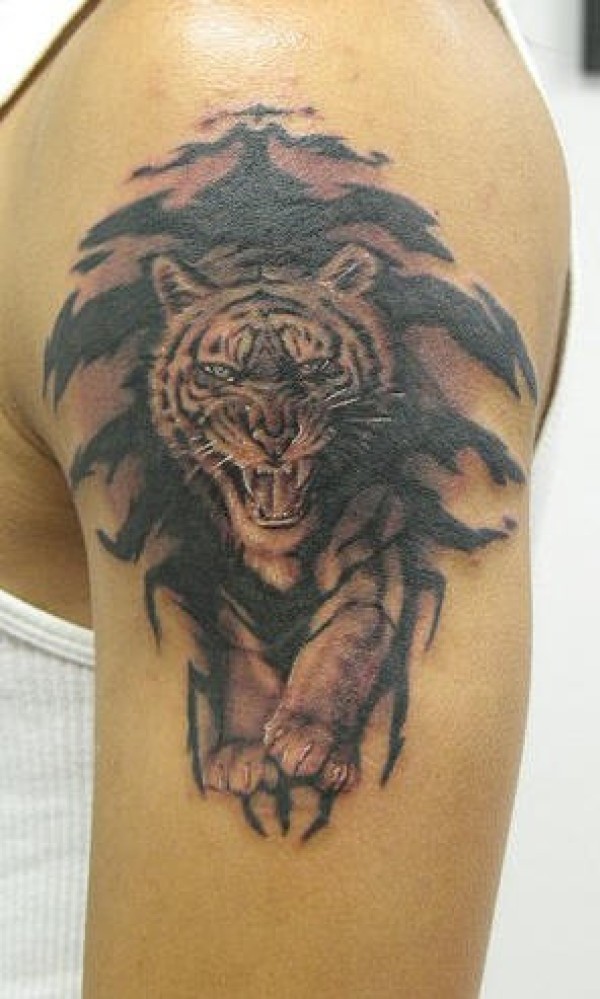 霸气半胛老虎纹身_动物纹身图案大全_纹身图吧