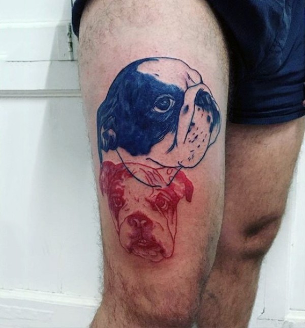 腿部五彩小狗肖像纹身图片