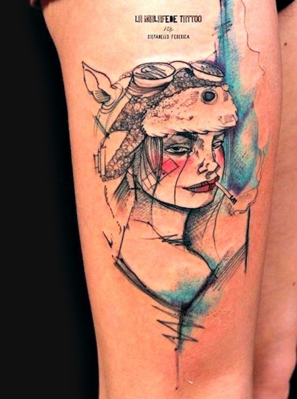 传统花腿纹身--18张传统风格的大花腿纹身图案作品