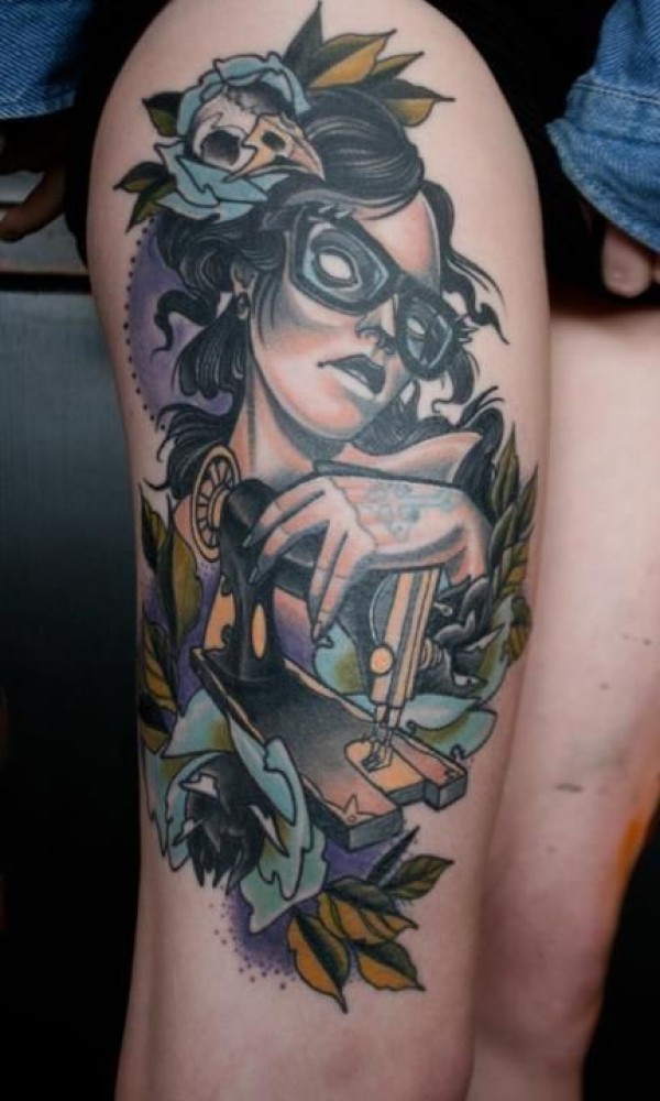 传统花腿纹身--18张传统风格的大花腿纹身图案作品