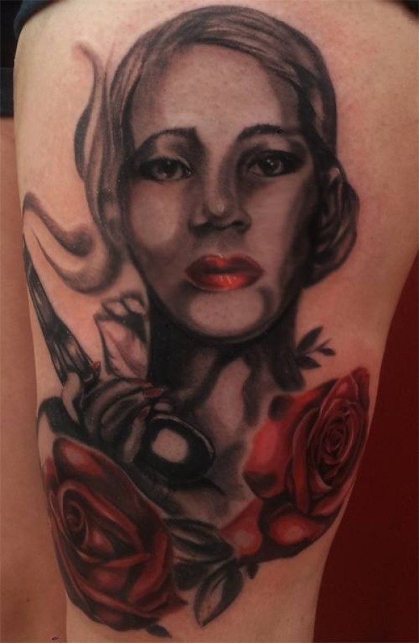 传统花腿纹身--18张传统风格的大花腿纹身图案作品