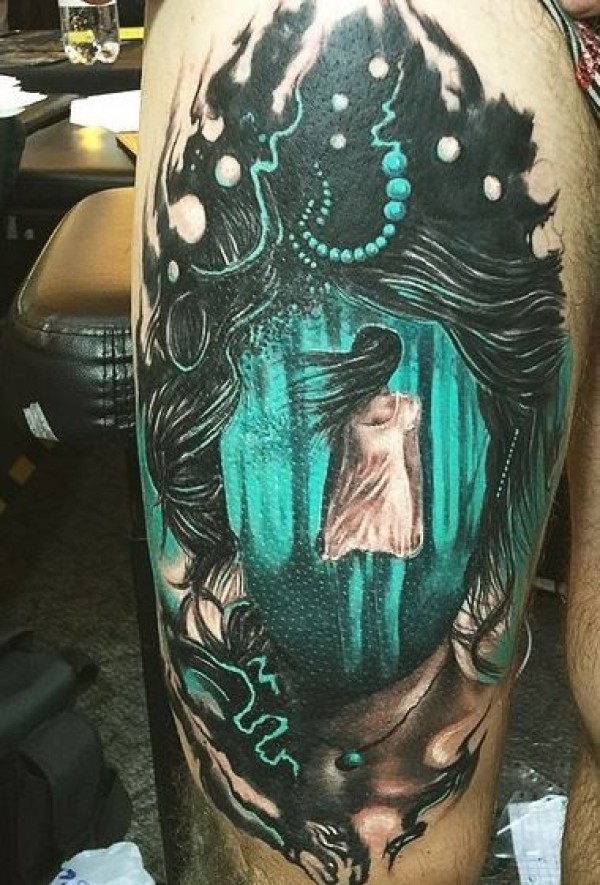 花腿纹身--一组大黑腿纹身图案作品欣赏
