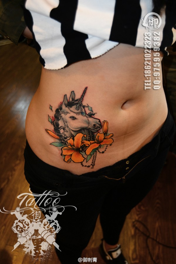 女性腰部莲花花纹刺青_腰部纹身图案大全_纹身图吧