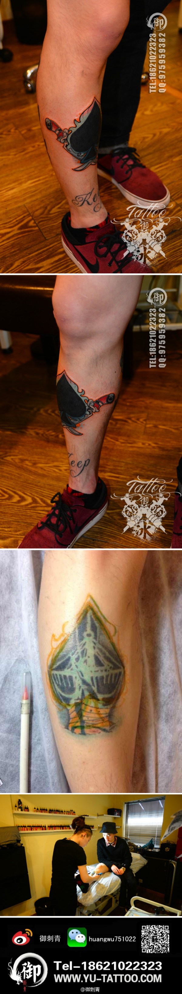 客人原本的纹身也太夸张了吧,强力遮盖黑桃加匕首