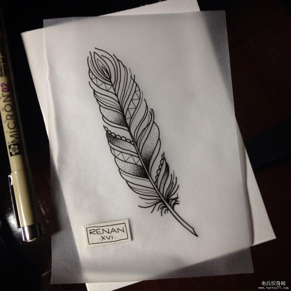 欧美school羽毛点刺纹身图案手稿
