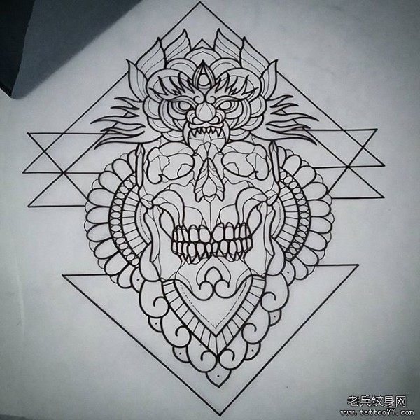 欧美school纹身骷髅几何图案手稿