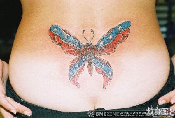 分享一款腰部时尚性感的蝶恋花纹身图案_腰部纹身图案大全_纹身图吧