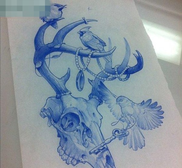 一组18张漂亮的欧美newschool动物纹身手稿图案