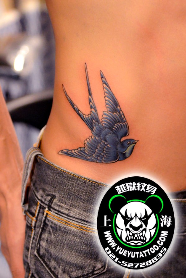 腰部蓝色燕子纹身图案