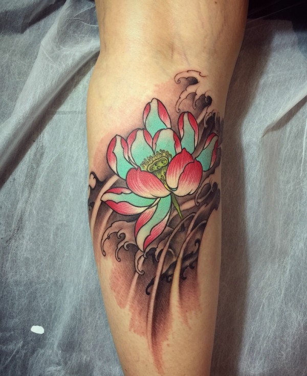传统鲤鱼花小腿纹身_腿部纹身图案大全_纹身图吧