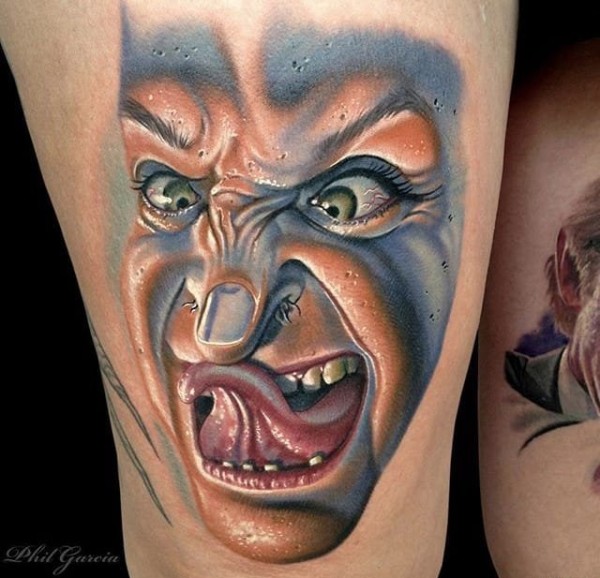 彩色的人物肖像纹身动物和玫瑰花纹身图案