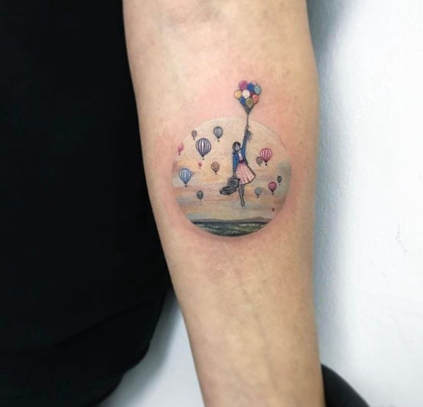 彩色的微小人物圆形纹身图案大全