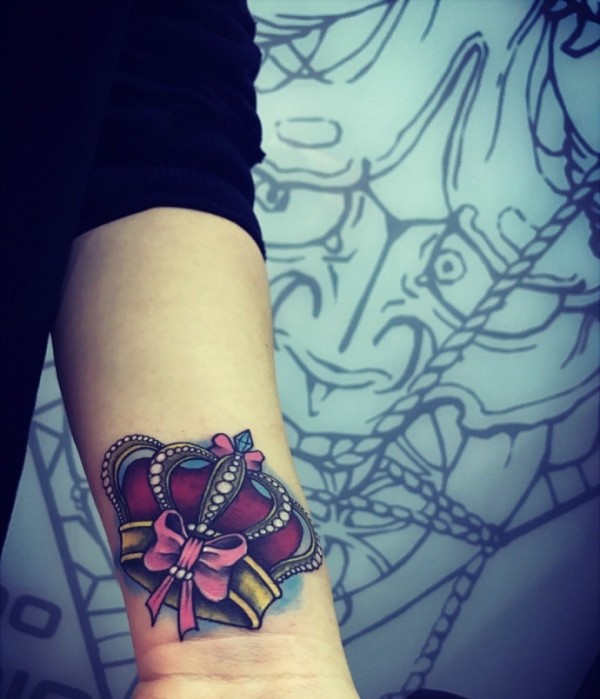 手臂个性好看的彩绘皇冠纹身图案