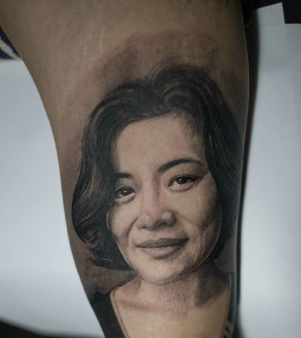 慈祥又伟大的母亲肖像黑灰纹身图案