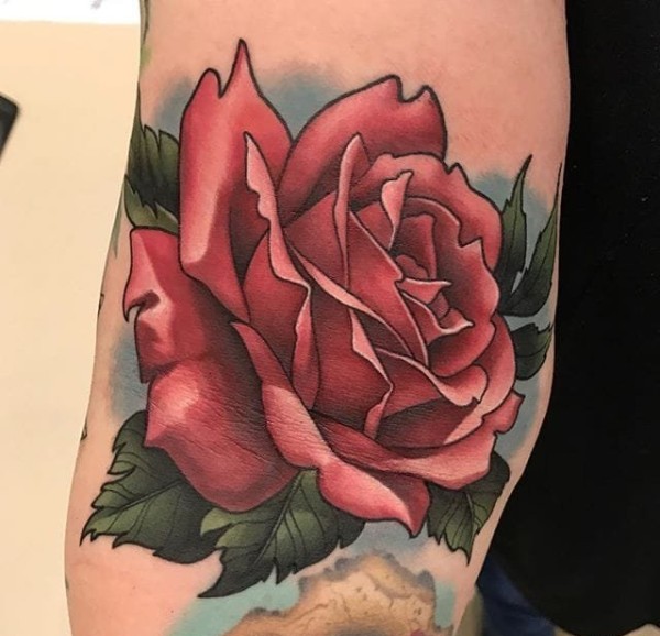 欧美玫瑰纹身 男生手臂上花朵纹身图片