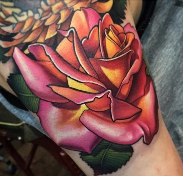 欧美玫瑰纹身 男生手臂上花朵纹身图片