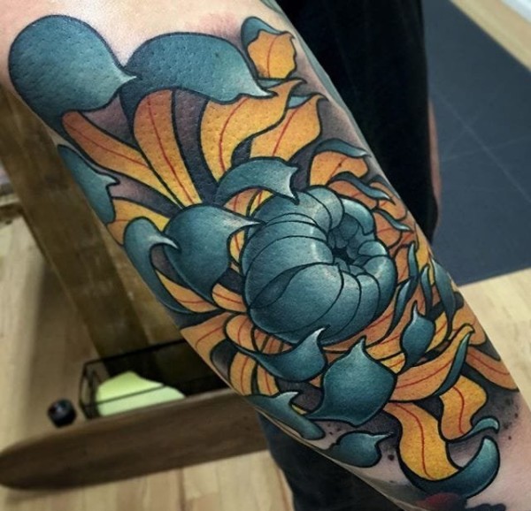 欧美玫瑰纹身 男生手臂上花朵纹身图片