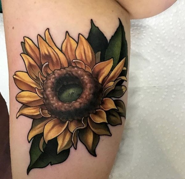 草图感向日葵纹身图案_植物纹身图案大全_纹身图吧