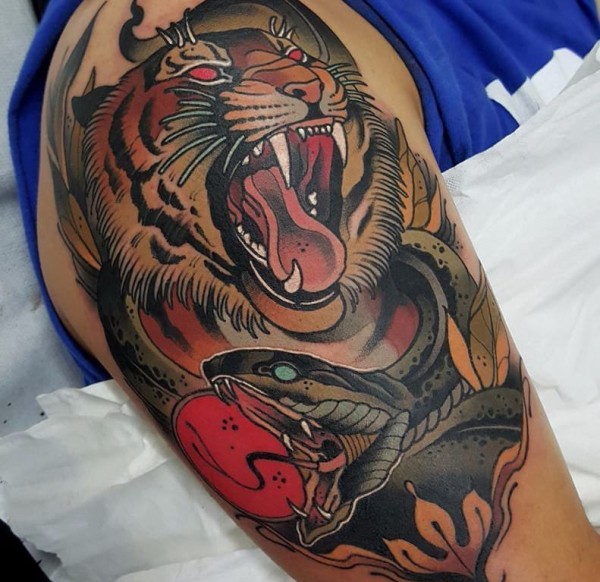 手臂莲花蛇纹身图案_臂部纹身图案大全_纹身图吧