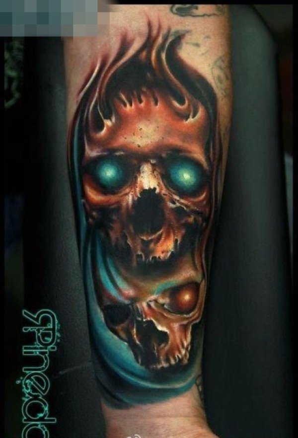 手臂很酷经典的欧美彩色骷髅纹身图案