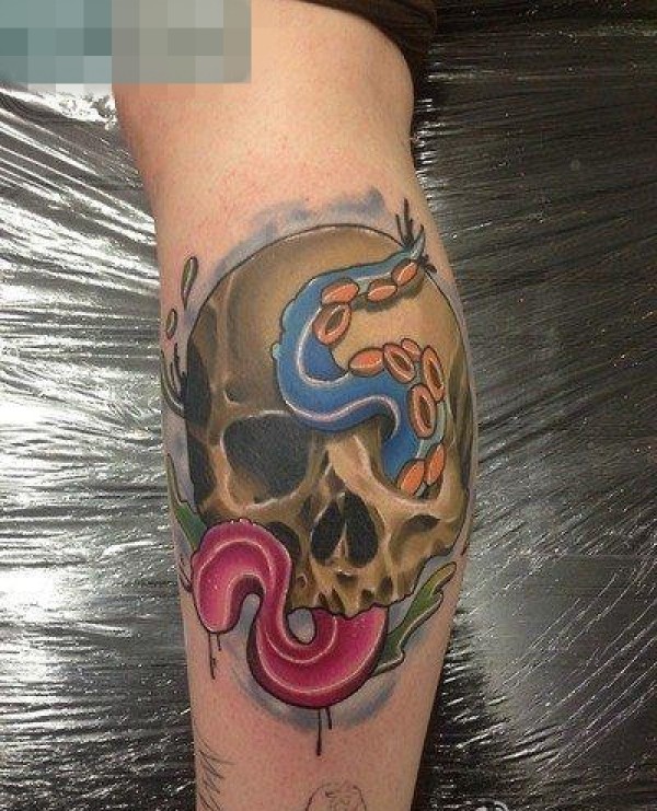超帅时尚的黑灰骷髅与蛇纹身图案