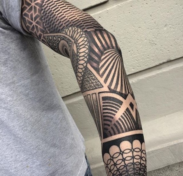 25款男性黑色手臂线条纹身点刺技巧半甲纹身图案