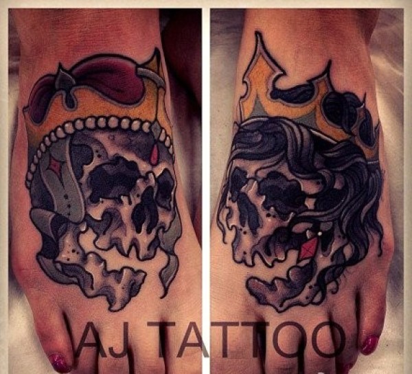 脚背潮流经典的黑灰骷髅纹身图案