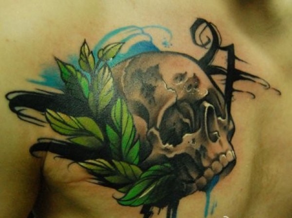 枫叶纹身骷髅文身彩色刺青_男士小图_骷髅纹身图案大全_纹身图吧