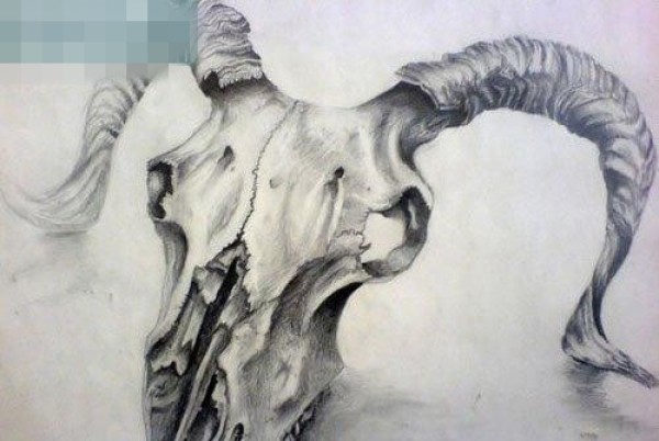 一张潮流经典的黑灰羊头骷髅纹身图案