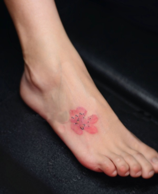 清新小桃花脚踝纹身_脚部纹身图案大全_纹身图吧