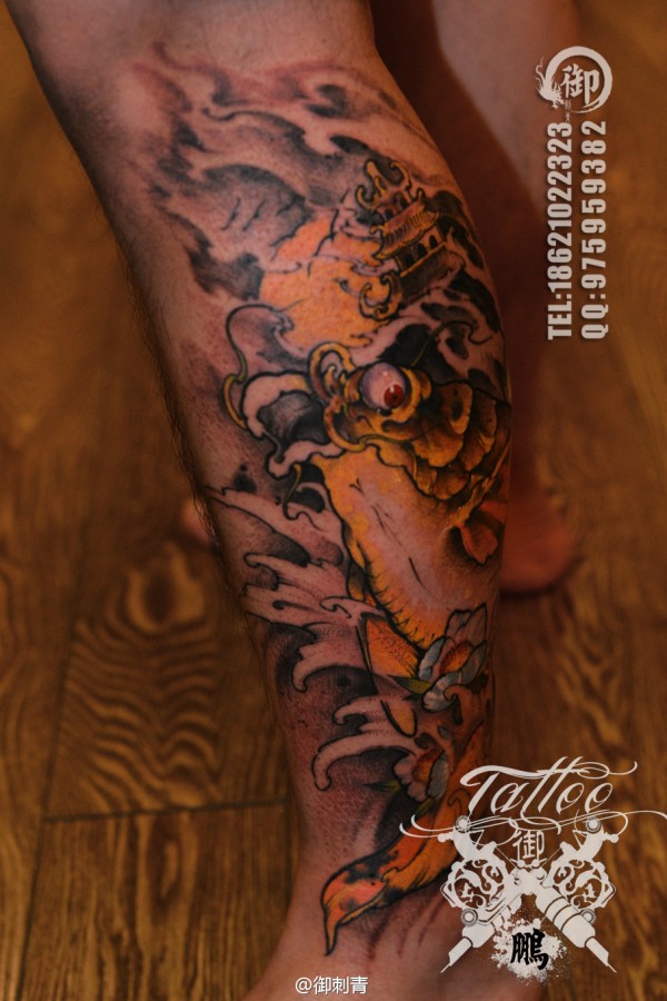 小腿上一款大象纹身图案_腿部纹身图案大全_纹身图吧