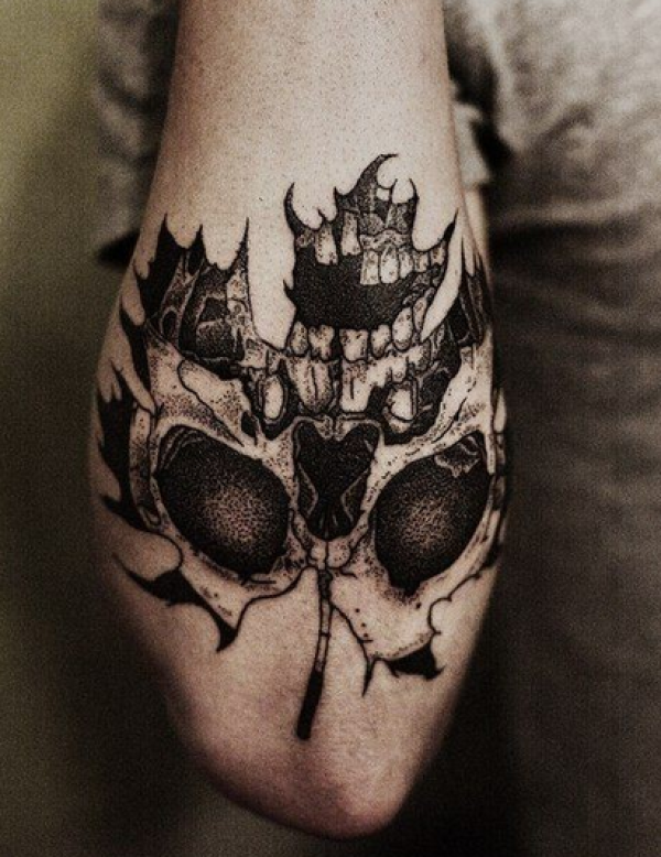 枫叶纹身骷髅文身彩色刺青_男士小图_骷髅纹身图案大全_纹身图吧