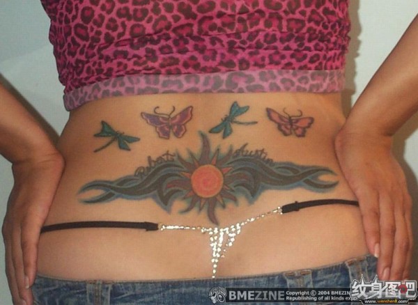 分享一款腰部时尚性感的蝶恋花纹身图案_腰部纹身图案大全_纹身图吧