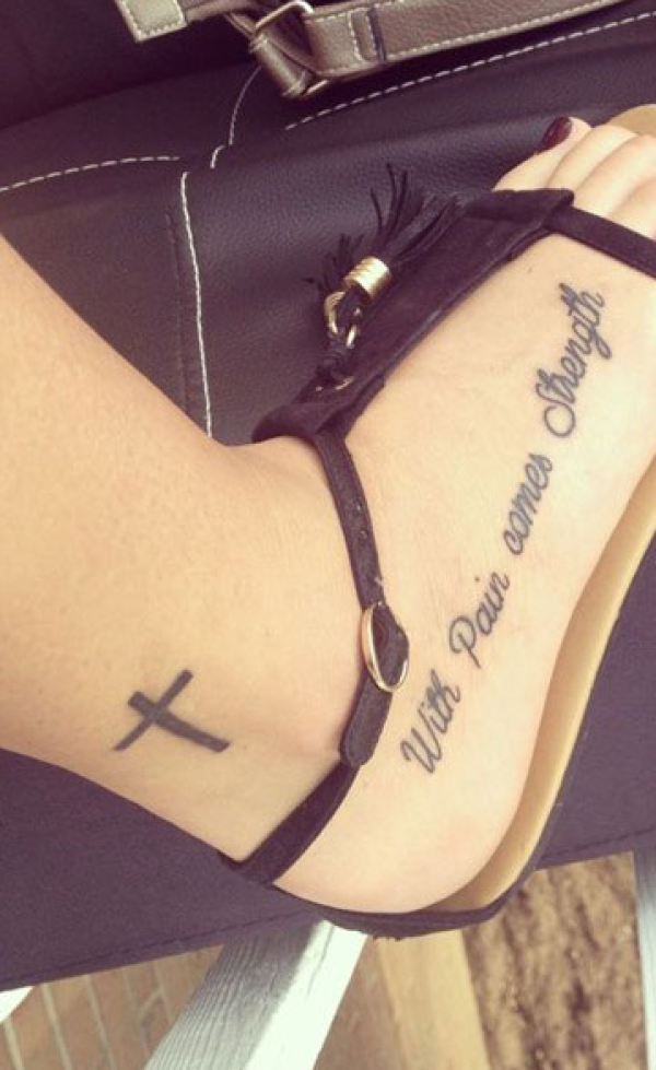 脚踝十字架和脚背的英文纹身图案