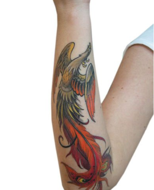 女生手臂潮流经典的传统凤凰彩绘纹身图案